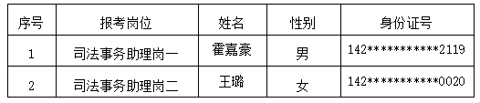 根據(jù)公司2025年8月28日發(fā)布的《忻州市定襄縣人民法院司法事務(wù)助理招聘公告》(項(xiàng)目編號(hào):XFYZP-2025XZ066)要求,經(jīng)過(guò)網(wǎng)上報(bào)名、資格審查、初試、面試、政審、考察、體檢等環(huán)節(jié),現(xiàn)將擬錄用人員及儲(chǔ)備人員名單公示如下: