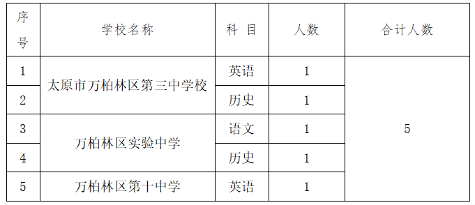 因太原市萬柏林區(qū)第三中學校、萬柏林區(qū)實驗中學、萬柏林區(qū)第十中學教師未招滿,為滿足我區(qū)部分中學校教學需要,結(jié)合學校實際,現(xiàn)面向社會為以上學校補充招聘政府購買服務教師,具體公告如下: