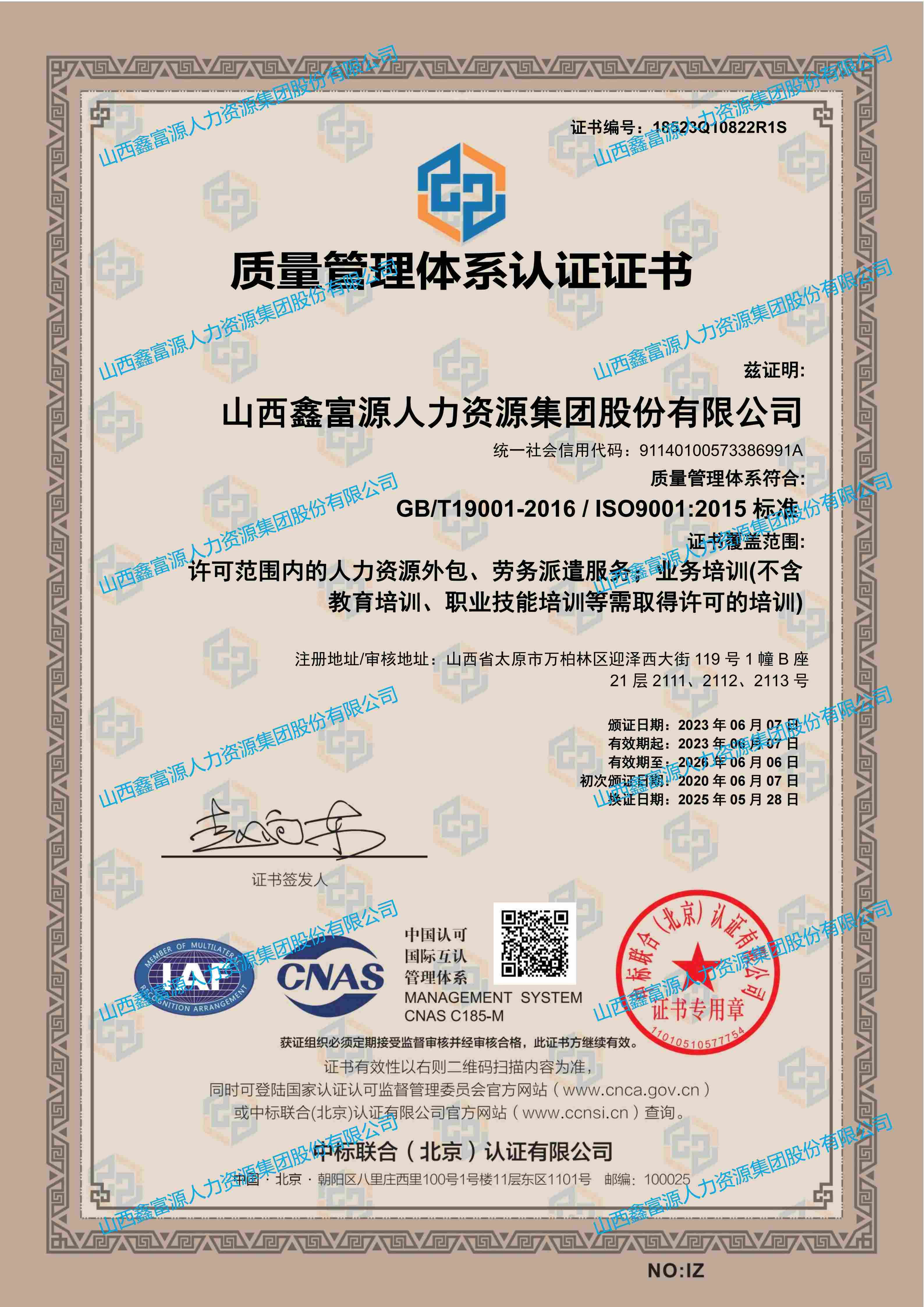 質(zhì)量管理體系認(rèn)證證書